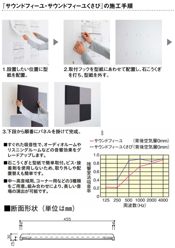 WB1102 お取り寄せ ダイケン 音響調整部材 音響・吸音用インテリア壁材 サウンドフィーユ 30mm厚 455×455mm 大建工業 DAIKEN 5.8kg