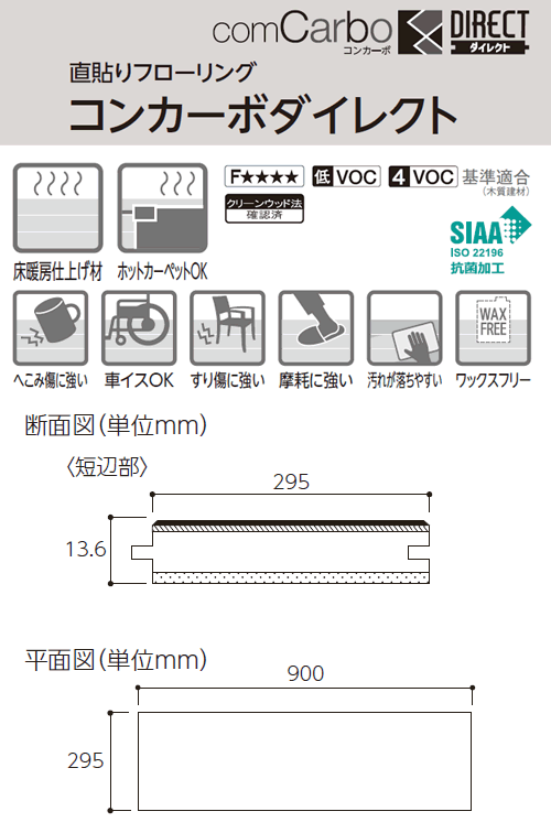 DXCB-XX お取り寄せ 直貼用 エイダイ フロア コンカーボダイレクト 295×900×13.6mm厚 12枚入(3.19米)遮音LL45 EIDAI 永大産業A品 19kg